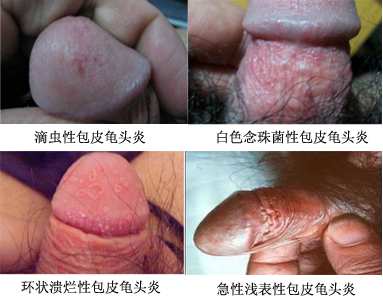 1、白色念珠菌性包皮炎:在包皮龟头上可见红斑,表面光滑并有小,边缘较清楚,急性发作时有糜烂和渗液。