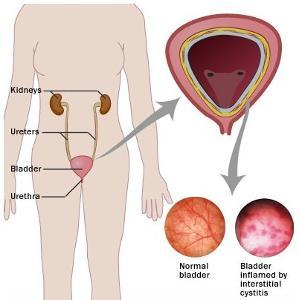 3、间质性膀胱炎是一种特殊的慢性膀胱炎:膀胱炎主要症状严重尿频、尿急、下腹痛、排尿痛、血尿等,膀胱镜检查发现膀胱容量减少,在膀胱底部或三角区有粘膜下出血。初次检查时不易发现,而在排出膀胱内液体