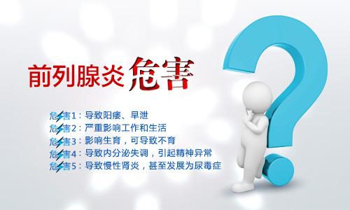 1、让患者痛苦不堪:前列腺炎出现后会严重的影响男性的生活和工作,由于炎症的经常刺激还会并发很多的症状,如:会阴、睾丸等局部部胀痛、尿不净、夜尿频等,使患者烦躁不安,影响工作和生活。》》》不确定自己是不是前列腺炎,找在线医生帮忙诊断》》》