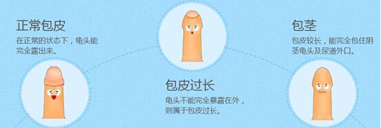 二、包皮过长,生殖器勃起来后,龟头无法自然从包皮中露出,若硬将包皮后拉露出龟头会引起疼痛者。