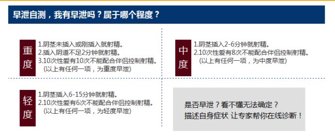 专家提醒:盲目自行用药会增加疾病的耐药性,减慢恢复速度,甚至有可能由于错误用药而导致终生性早泄。男性朋友发现早泄症状时,应去专业正规医院进行精准检查,再对症治疗。